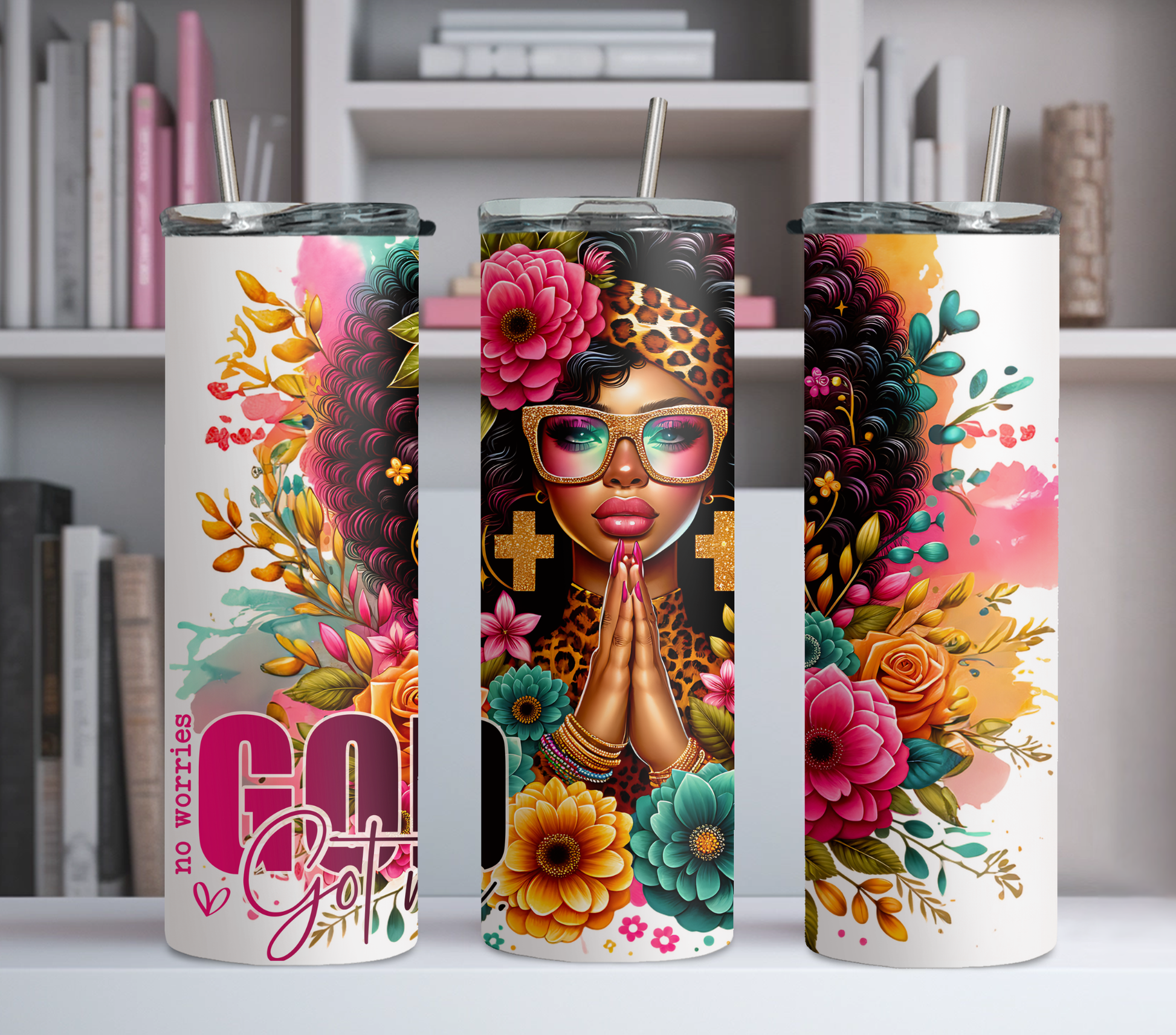 Melanin Made 20oz Skinny Tumbler, Coffee Lover Tumbler, Stainless Steel, Lid & Straw, African American Women